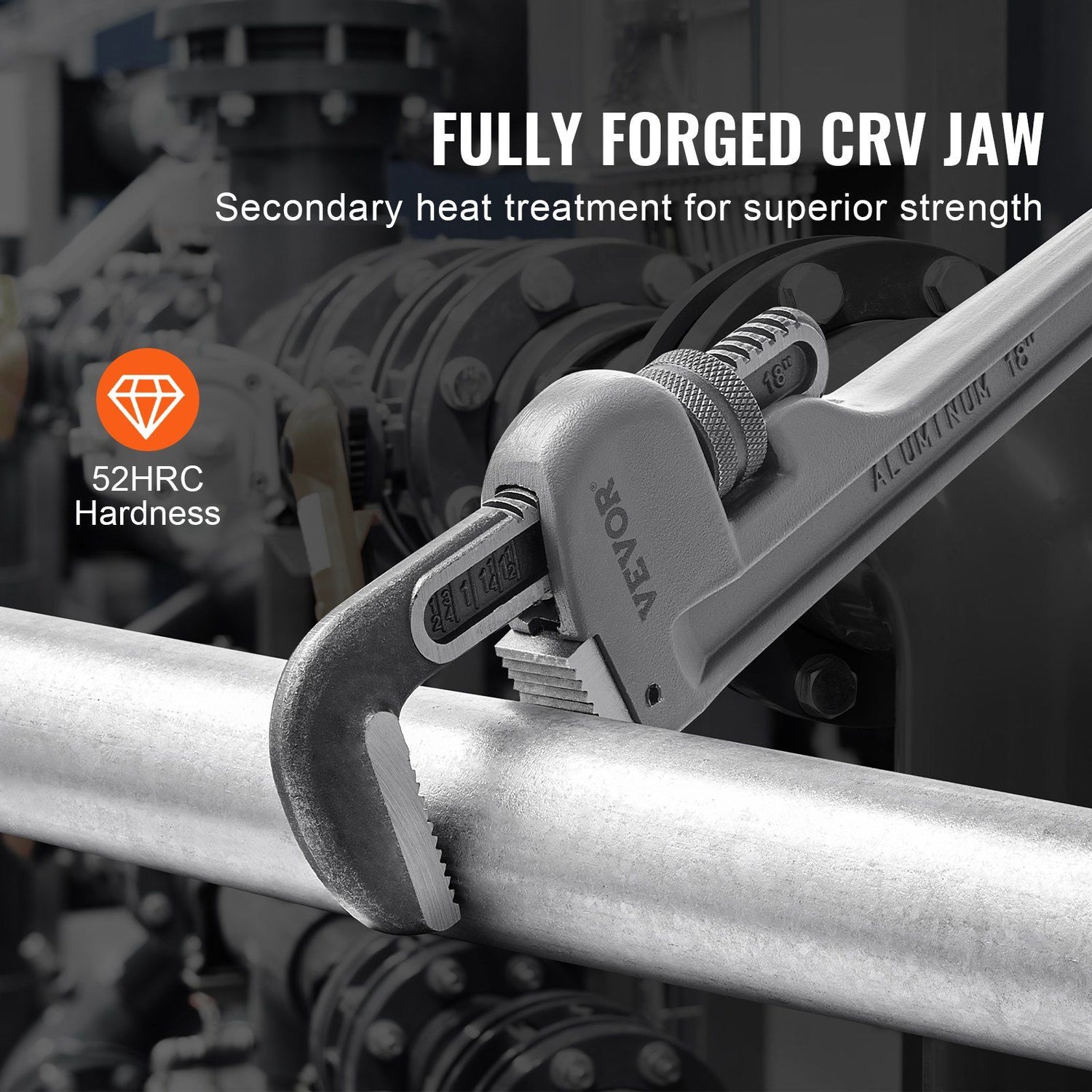 VEVOR 3-Piece Pipe Wrench Set, 10" 14" 18" Aluminum Straight Pipe Wrench, Adjustable Plumbing Wrench, with High Strength Jaw and Ergonomic Handle, Hangable Design, for Water Pipes, Automotive Repairs