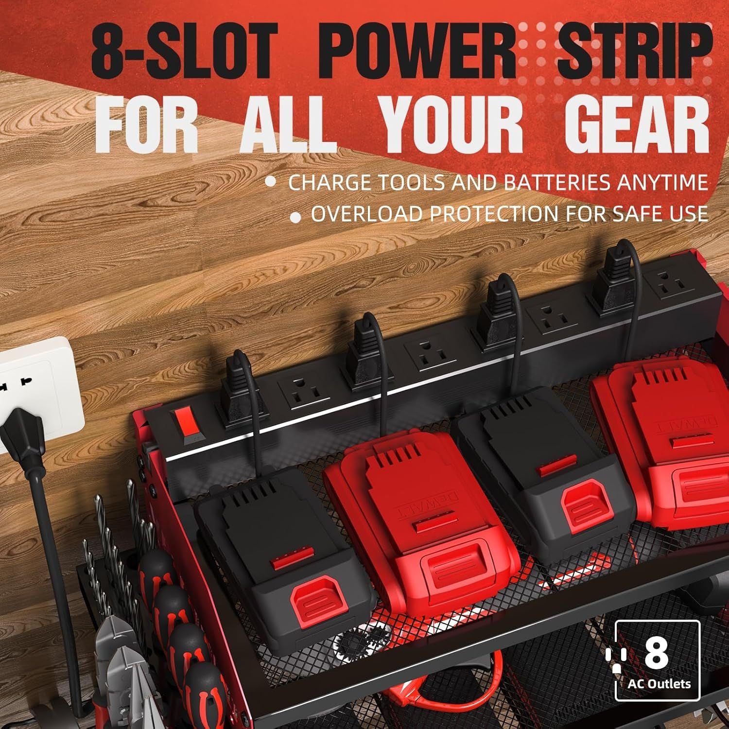 Power Tool Organizer with Charging Station, 4 Drill Holders, Heavy Duty Modular Wall Mount Rack for Garage & Shed Organization, Tool Storage Organizer, Gifts for Men Dad Husband Christmas - Red is backordered and will ship as soon as it is back in stock.