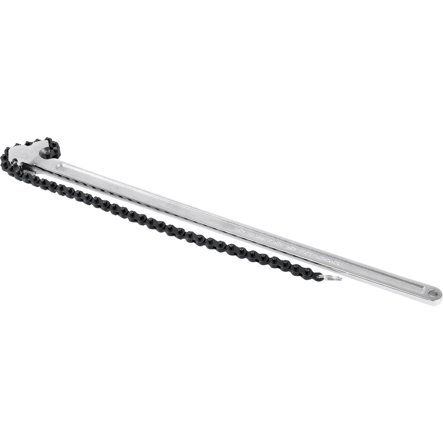7" Clamping Capacity: The 24-inch wrench can clamp max pipe diameter: 6.7 inch/170 mm. It is designed to provide maximum locking force and bring more convenience to your work. The chain length: 22 inch/560 mm.